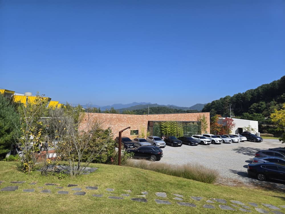 조그마한 나무들로 예쁘게 꾸며진 주차장의 모습도 이쁘네요.