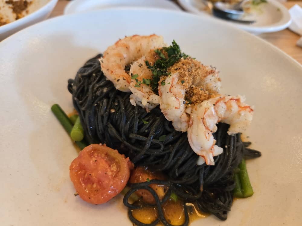 마지막으로 홍새우 먹물파스타가 나왔습니다.