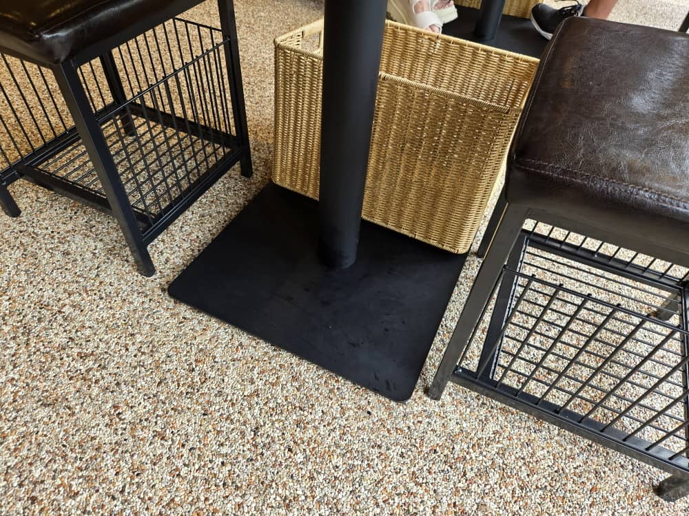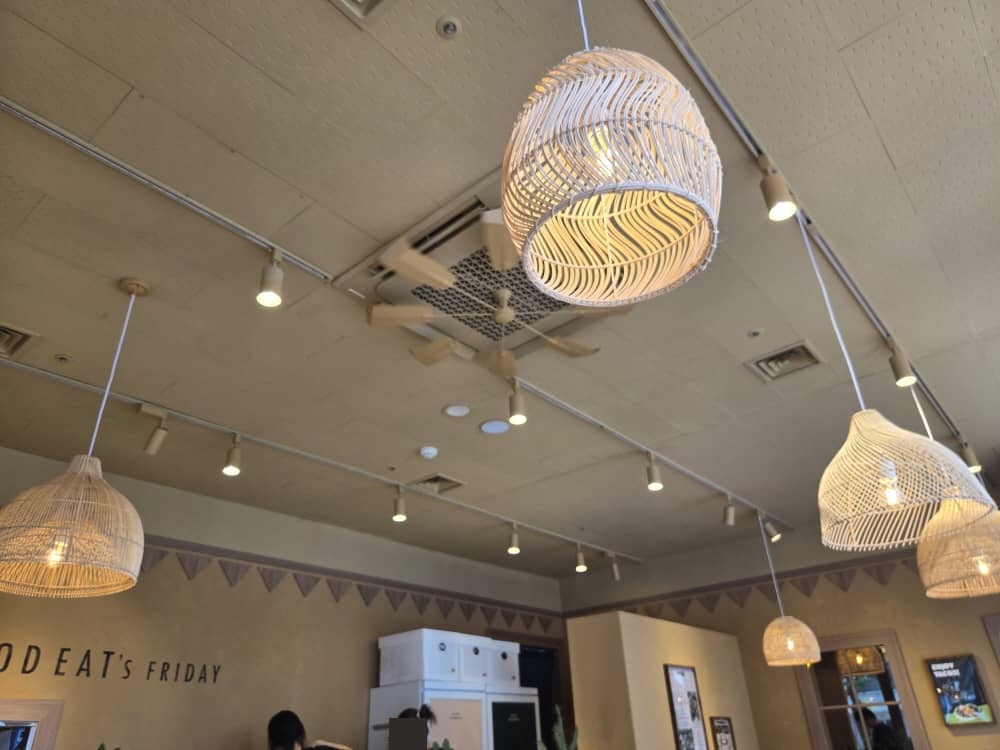테이블마다 한켠에는 라탄 바구니가 놓여있어 짐을 둘 수 있어요.