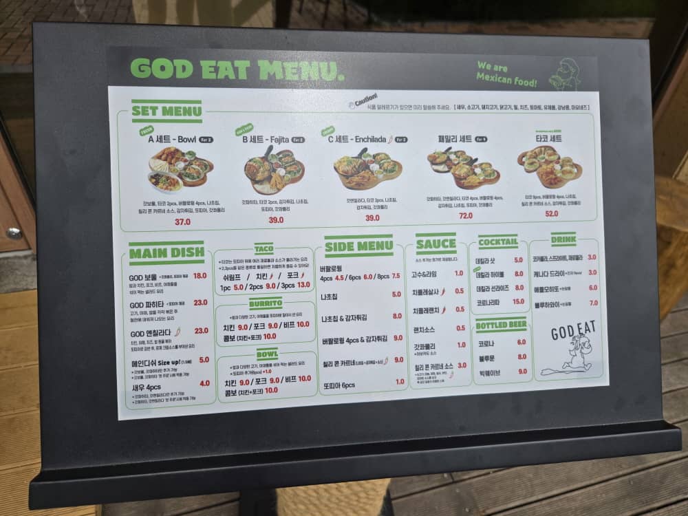 오픈시간에 맞춰 방문했는데 이미 만석이였던 멕시칸 음식점 갓잇! 바로 보여드릴게요.