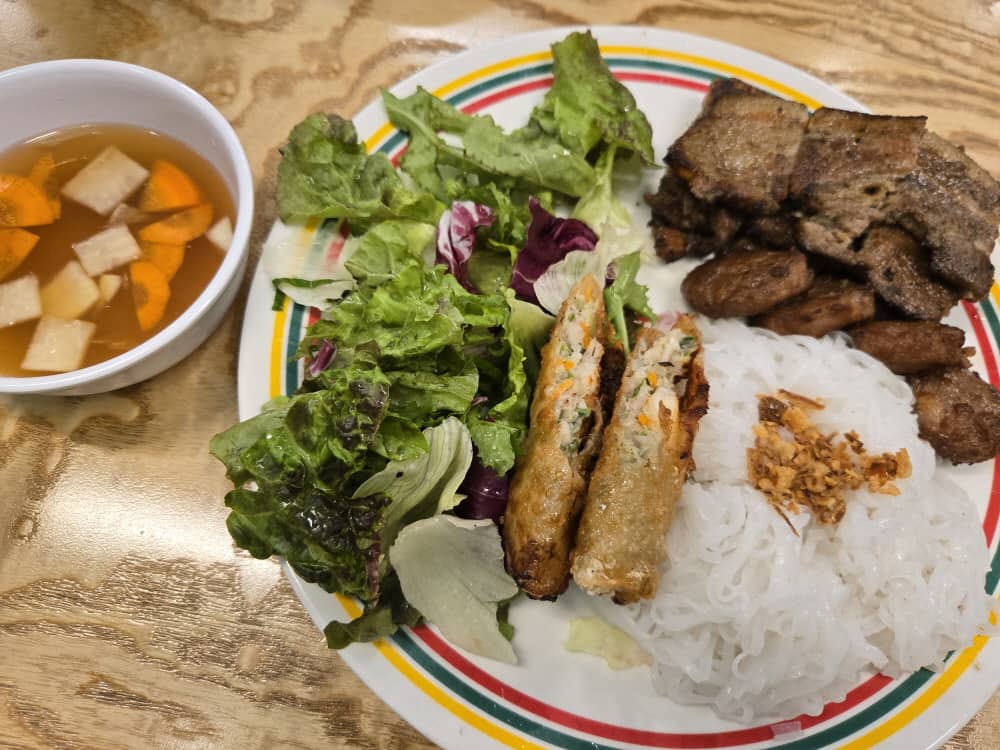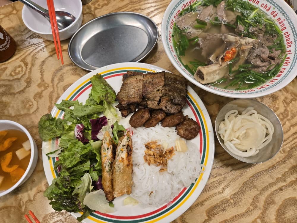 분짜는 숯불에 구워 나오는 고기와 튀김을 소스에 푸욱 찍어서 면과 샐러드와 함께 먹으면 간이 딱 적당하고 맛있었어요.