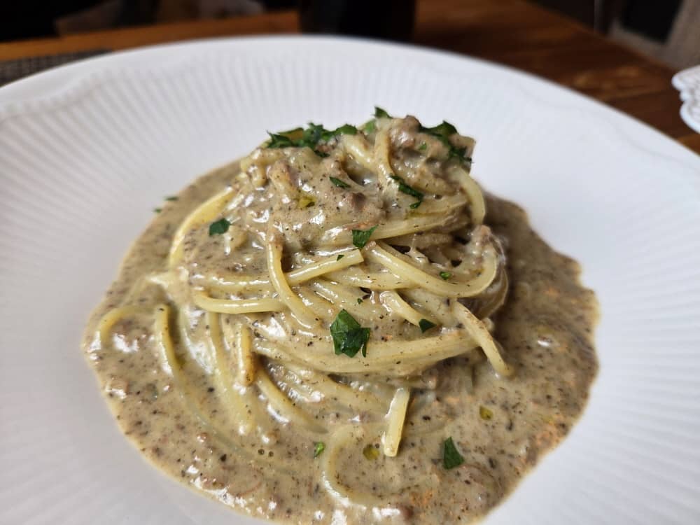 그리고 화이트라구파스타는 크림소스로 조리된 파스타로 소고기들이 씹히면서 고소한 맛이 났습니다.
