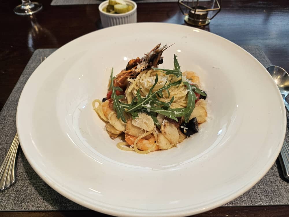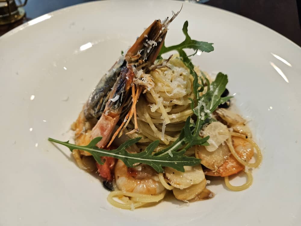 그리고 알리오올리오 파스타는 큼지막한 새우가 눈길을 사로잡네요.