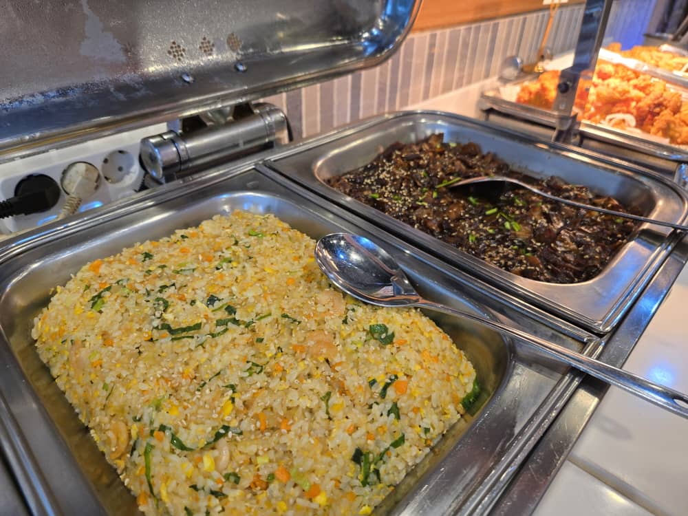 셀프바는 볶음밥과 짜장, 잡채, 튀김, 떡볶이 등이 있어요.