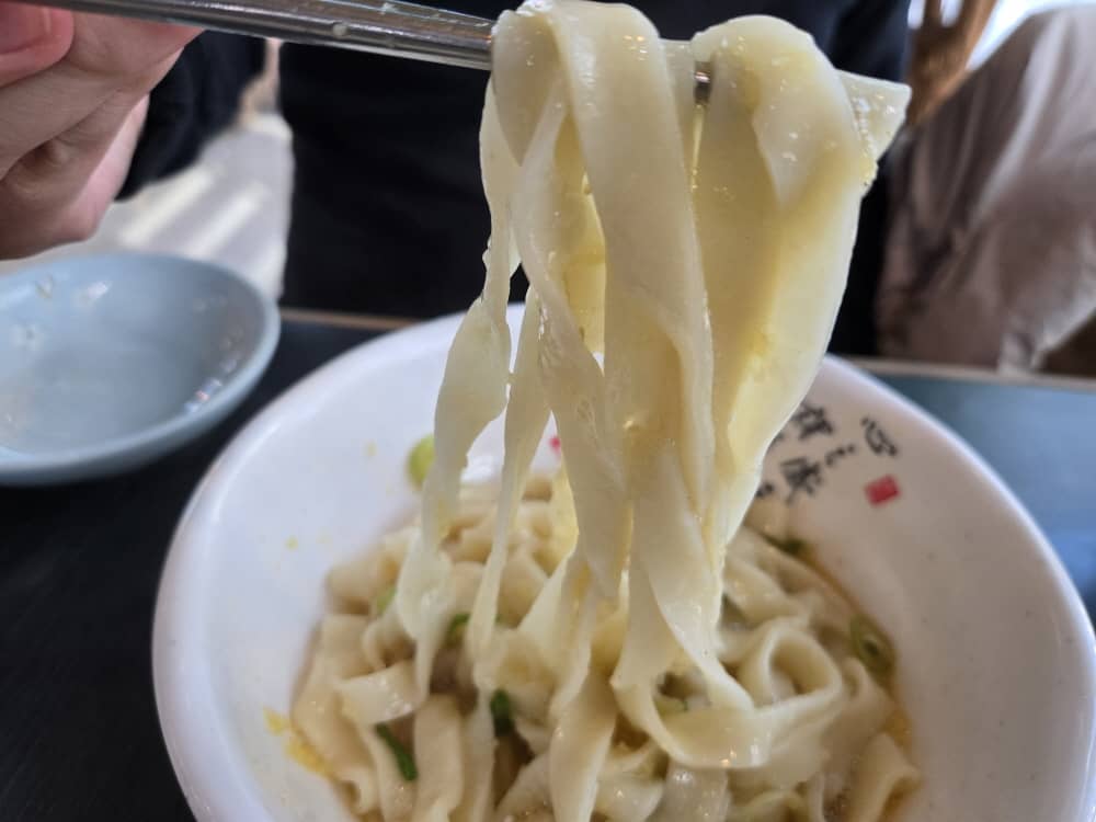 온우동은 납작한 우면으로 만들어졌는데 면발이 정말 쫄깃했어요.