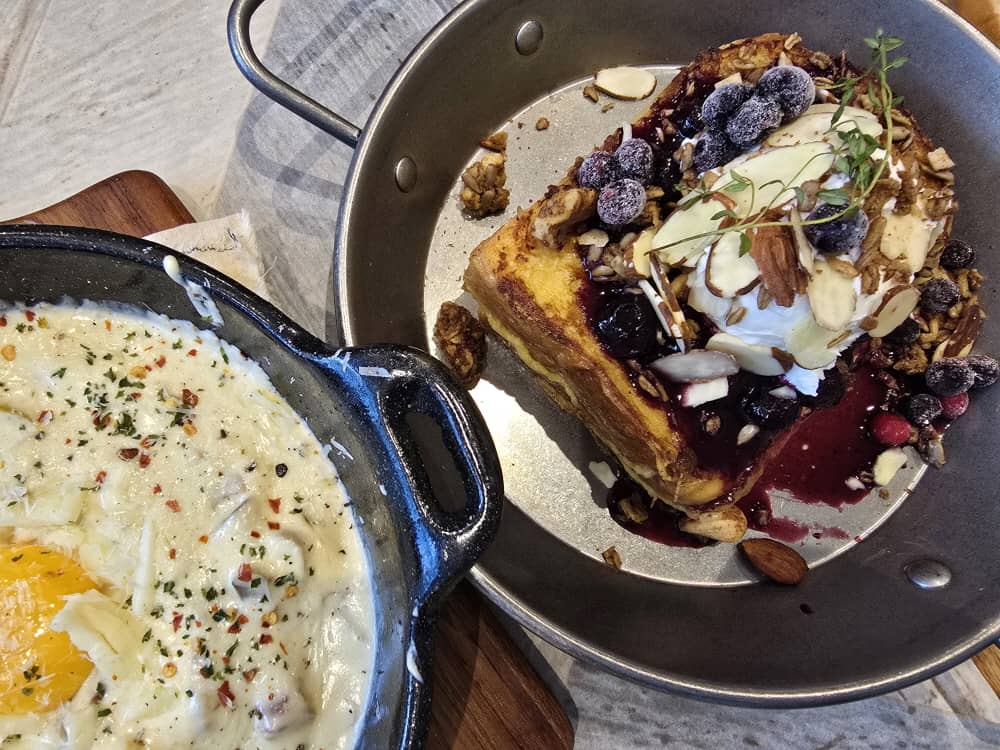 테리토리의 대표적인 메뉴 중 하나는 크렘마밋과 프렌치토스트입니다.