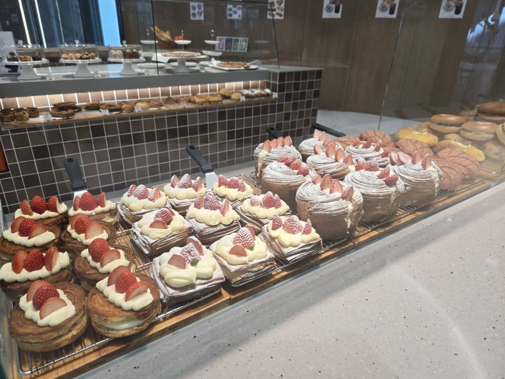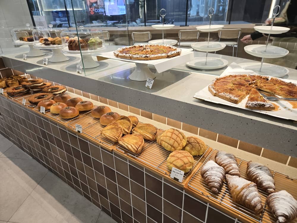 베이커리 진열대가 현켠에 마련되어 있습니다.