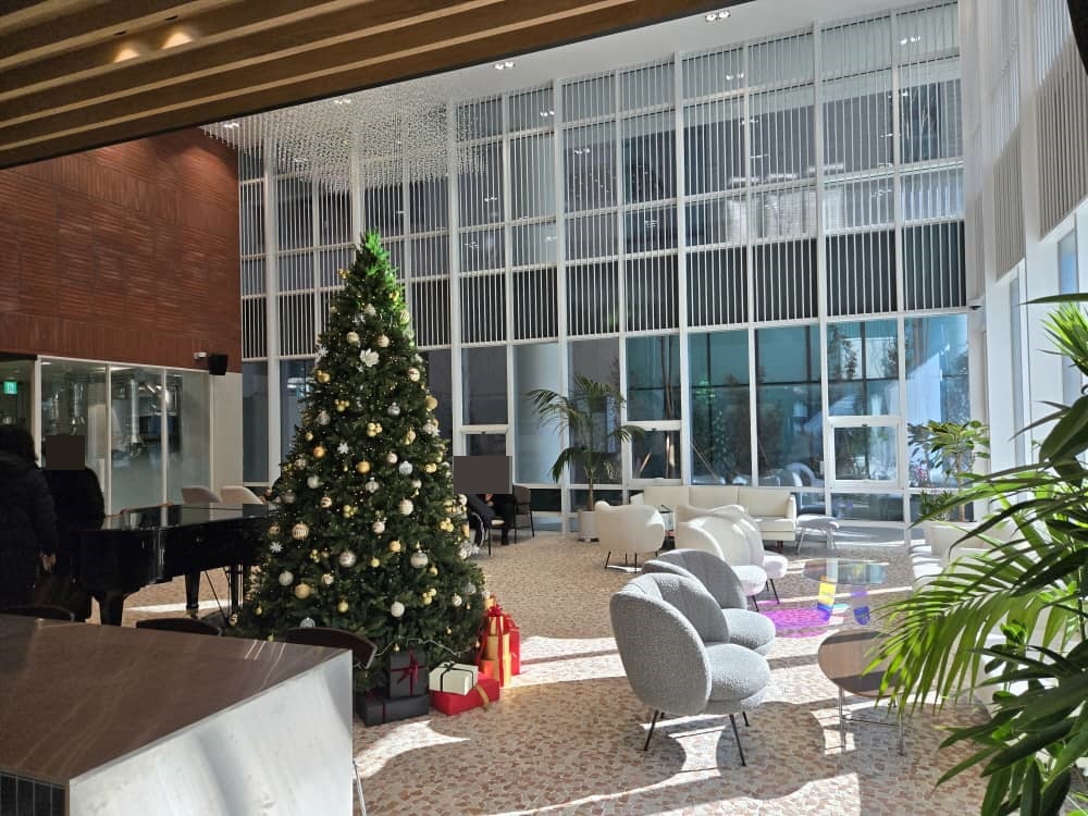 안으로 들어가니 크리스마스 트리가 맞이하고 있어요.