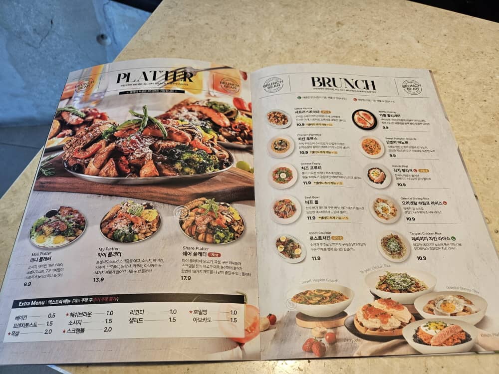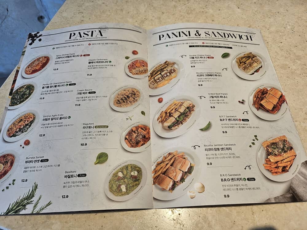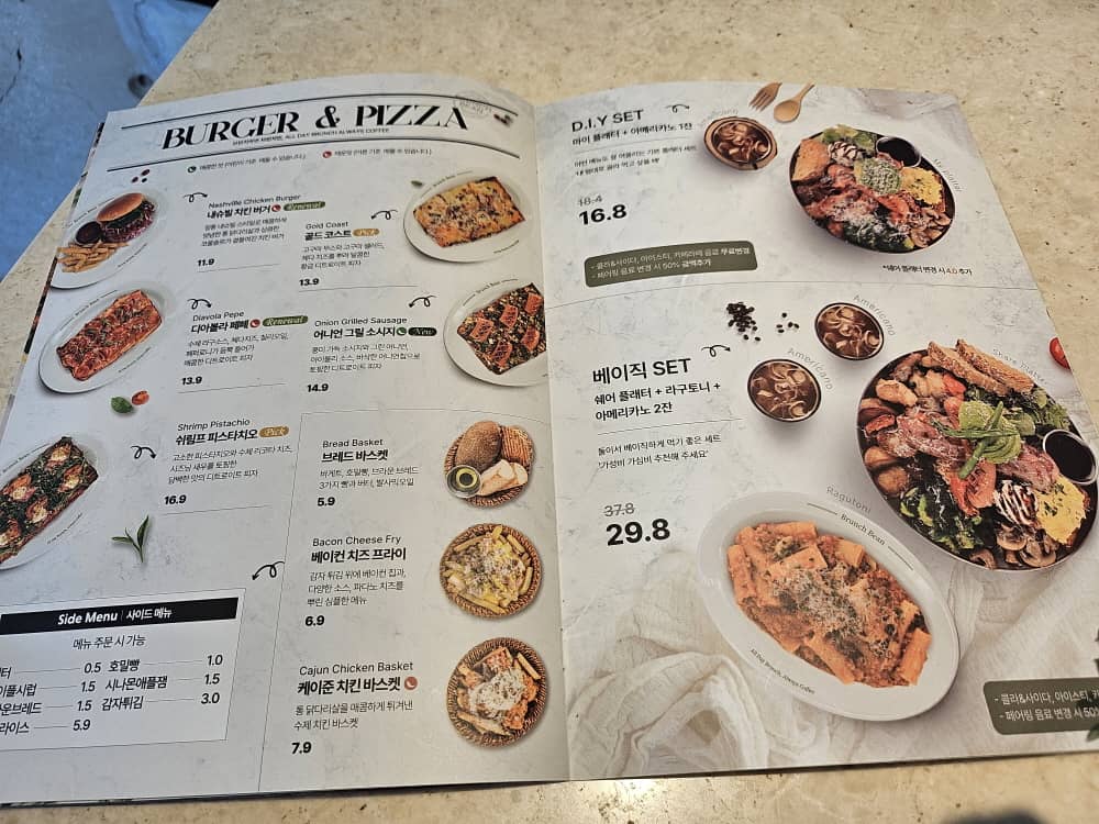 메뉴는 브런치부터 파스타, 피자, 버거, 샌드위치 등 다양한 종류가 있습니다.