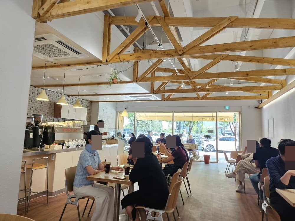 돌핀커피는 지금의 위치 이전부터 주민들의 찐맛집이였는데, 이전한 현재 위치의 매장이 더욱 커지면서 사람들이 항상 북적이는 커피 맛집입니다.
