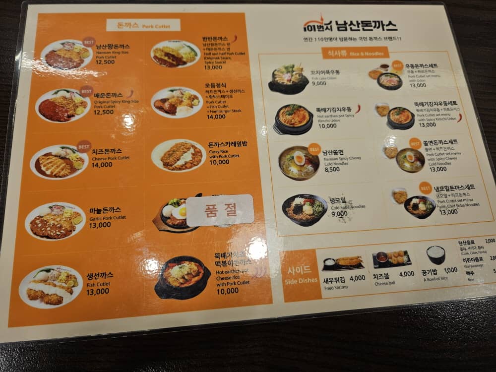 101번지 남산돈까스 메뉴