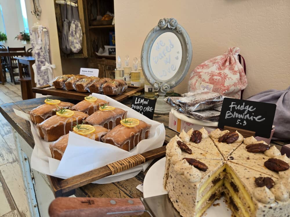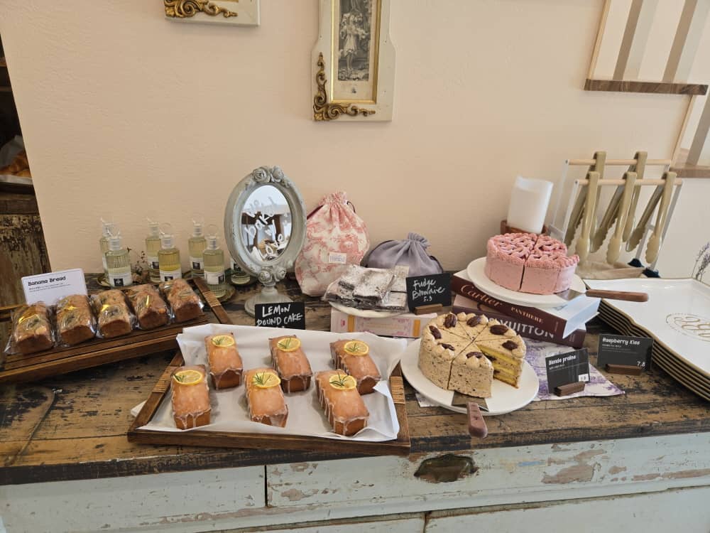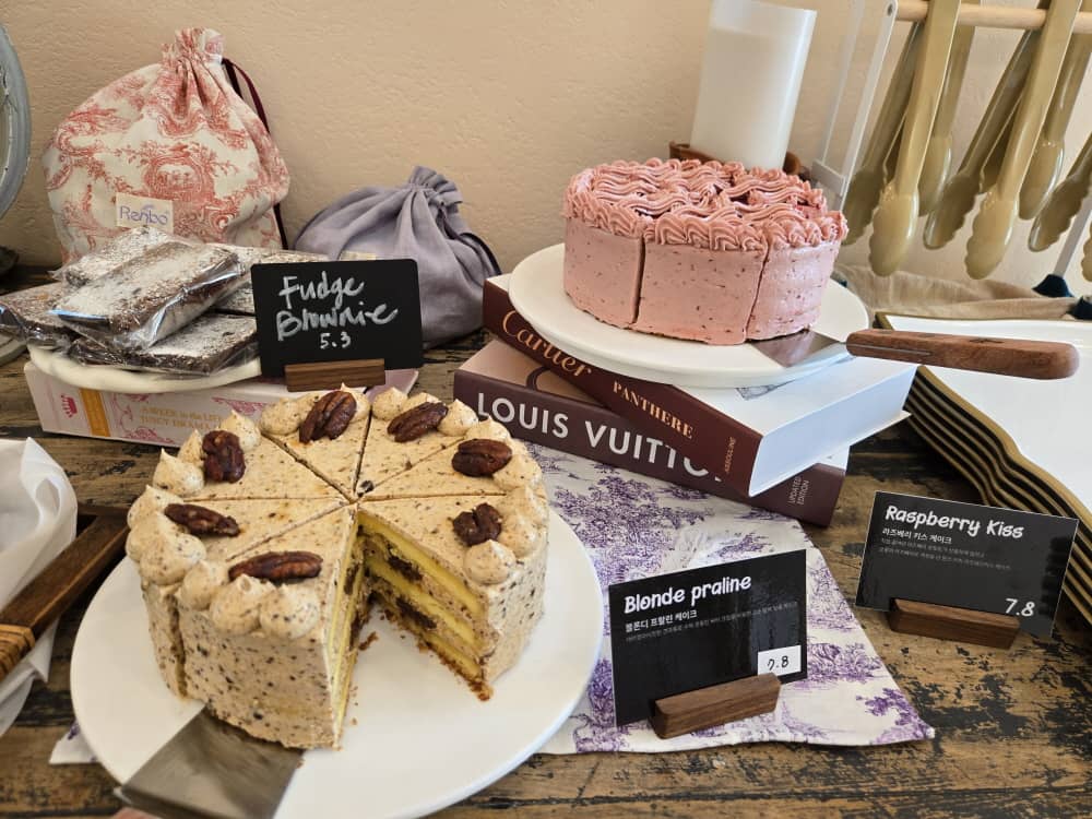 알고보니 마냥 인테리어인줄로만 알았던 곳 위에는 케이크와 휘낭시에, 소금빵들이 놓여져 있었어요.