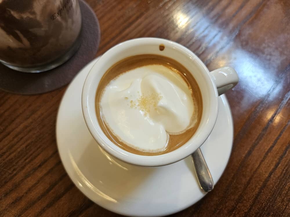 저는 에스프레소 위에 생크림이 가득 올라간 콘파냐를 주문했습니다.