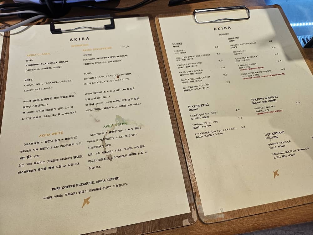 송도 아키라커피 메뉴