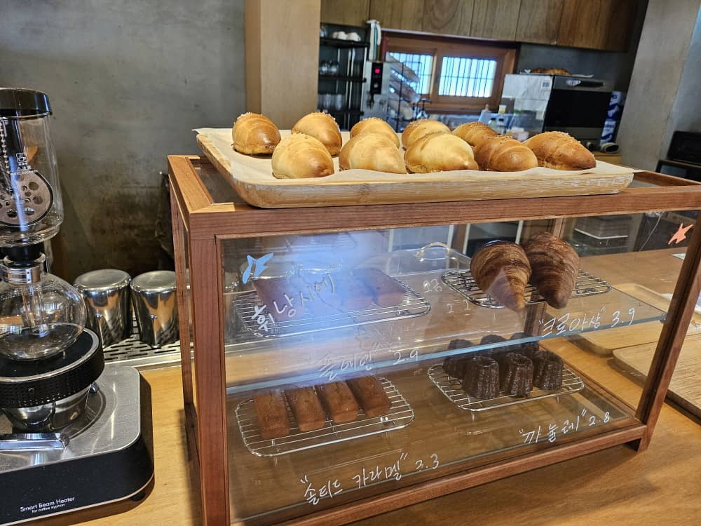 솔티카라멜 피낭시에는 겉바속촉의 호불호 없는 맛있음이었고, 소금빵은 아담한 크기지만 버터향이 풍부하고 맛이 괜찮았어요.