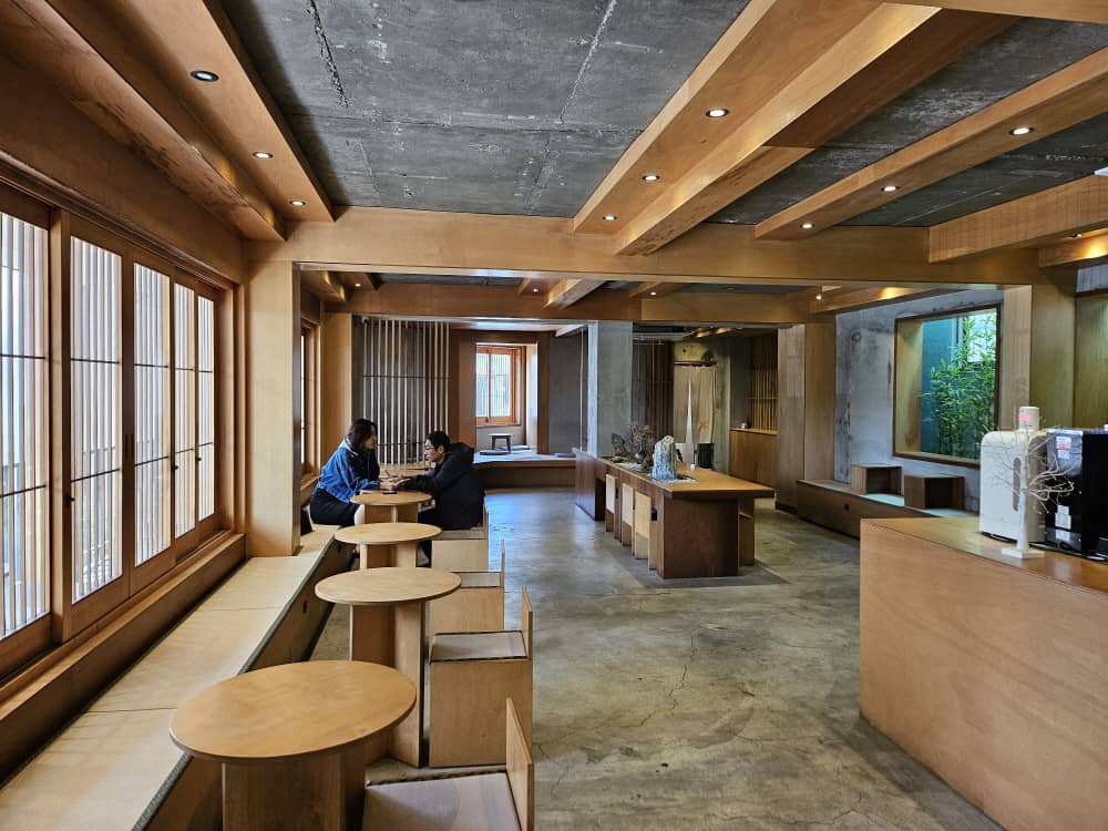 창문 사이에 보이는 식물들이 고즈넉한 분위기를 더 높여줍니다.