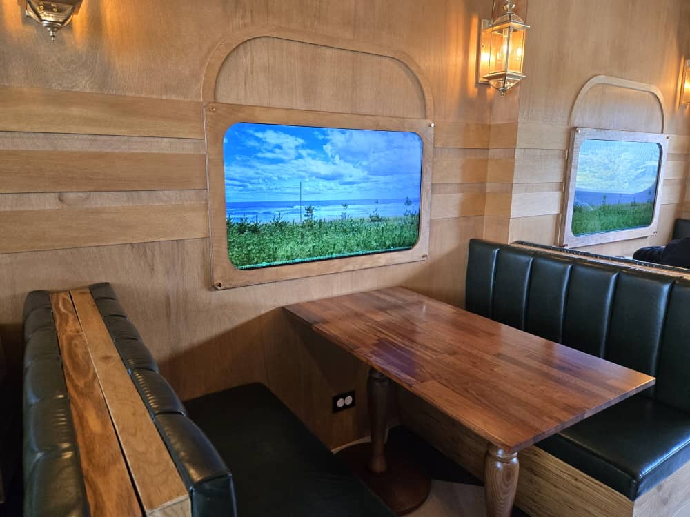 마치 기차안에 와있는 듯한 인테리어가 인상적이에요.