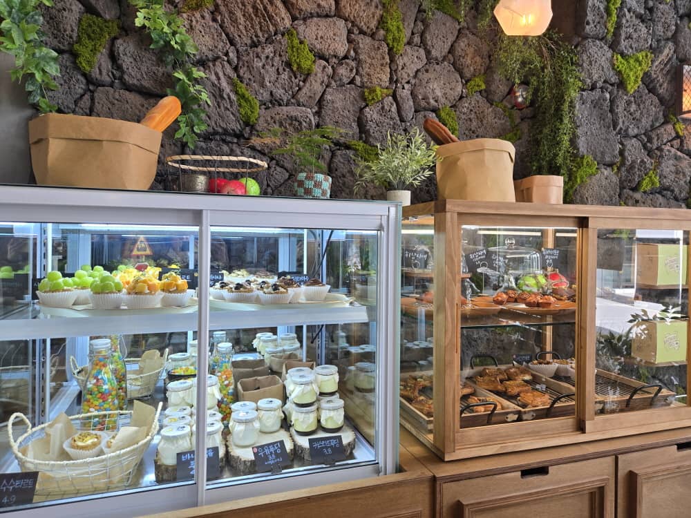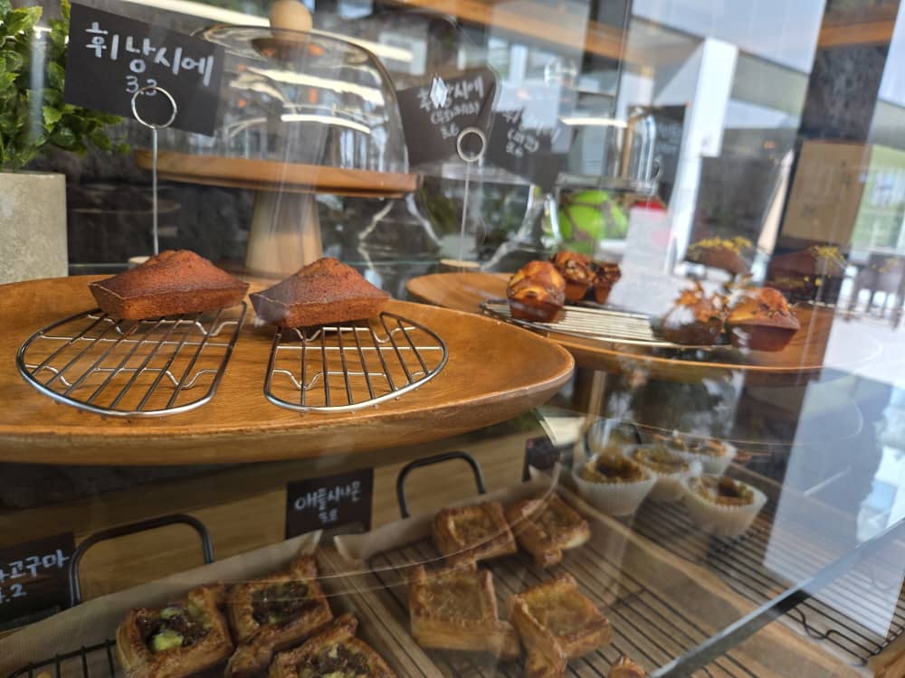 그리고 카운터 옆에는 푸딩과 케이크, 베이커리 디저트가 진열되어 있어요.