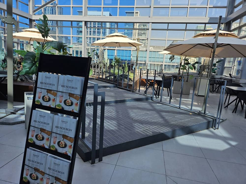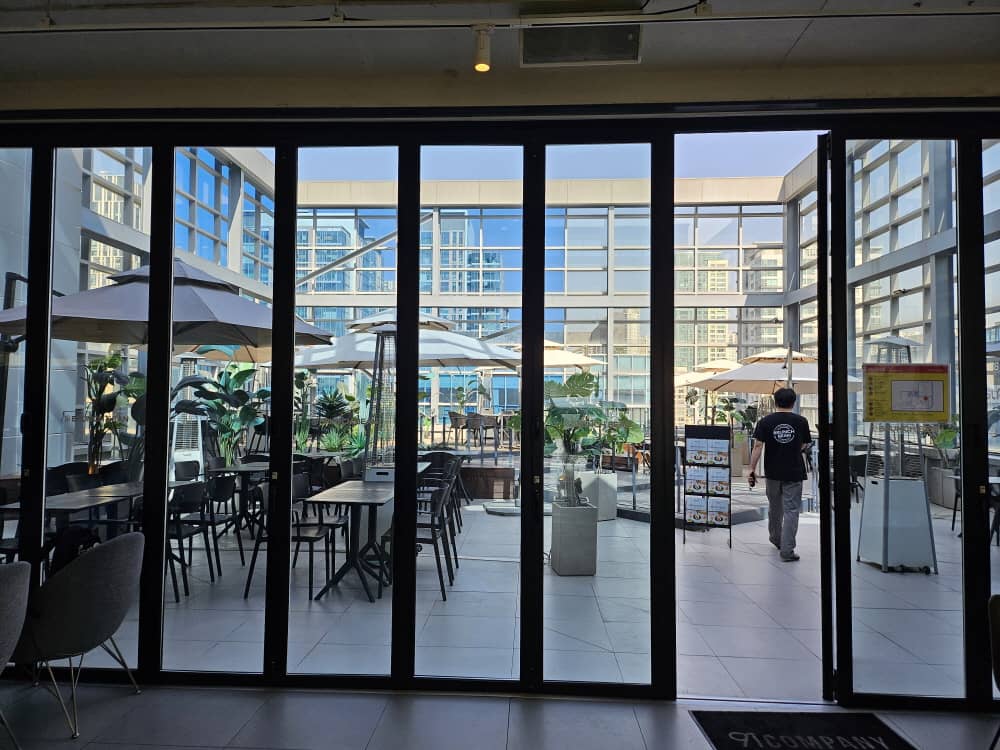날씨가 추웠을 때는 테라스를 닫아두었는데 이제 오픈하기 시작했어요.