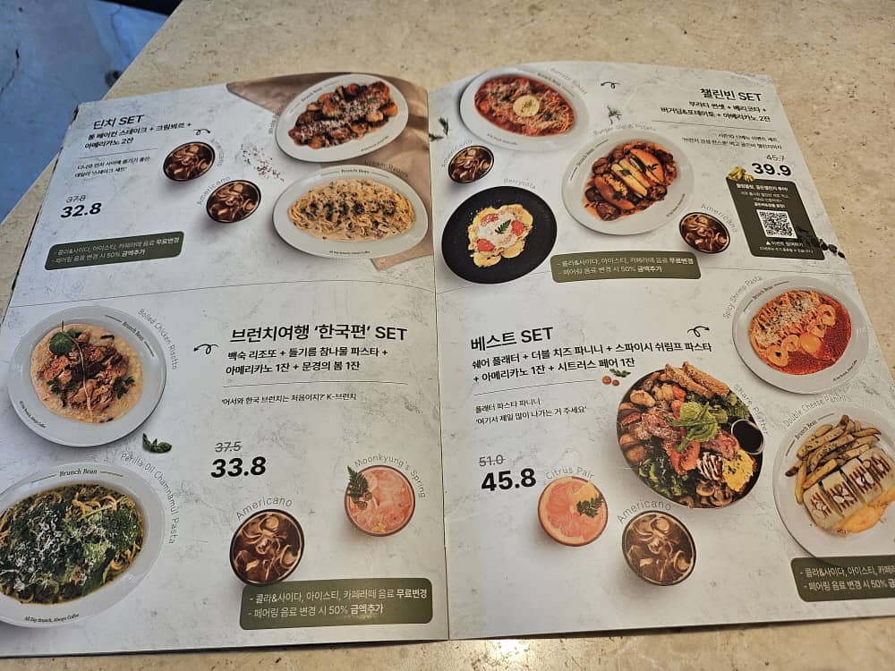 메뉴는 브런치부터 파스타, 피자, 버거, 샌드위치 등 다양한 종류가 있습니다.