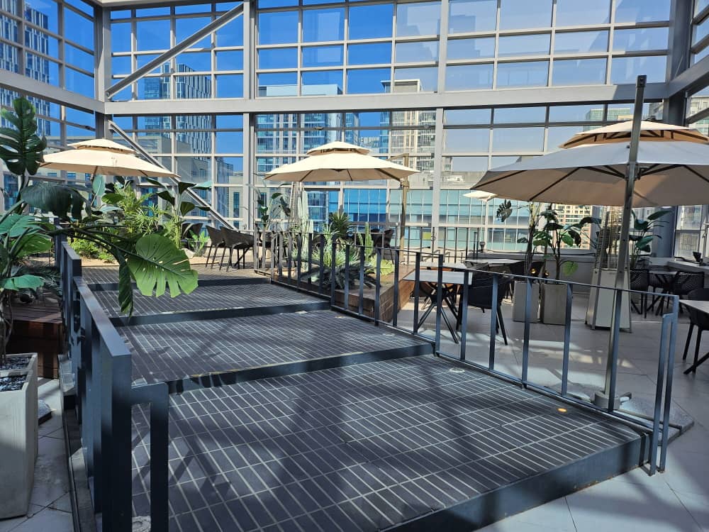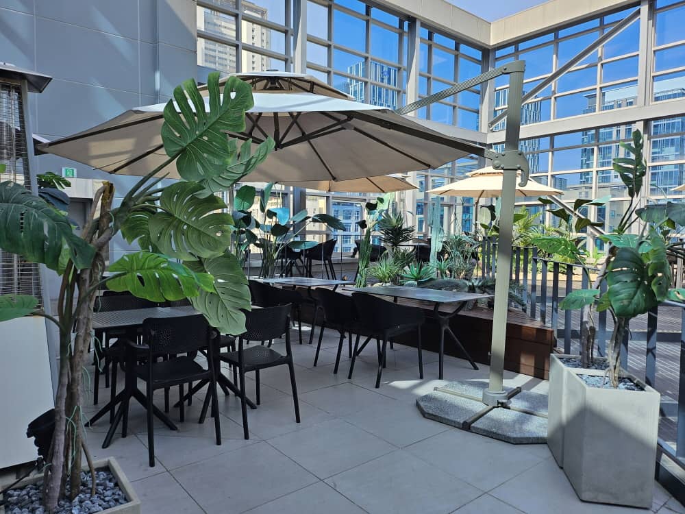 조금씩 사람들이 테라스에도 자리를 잡기 시작했어요.